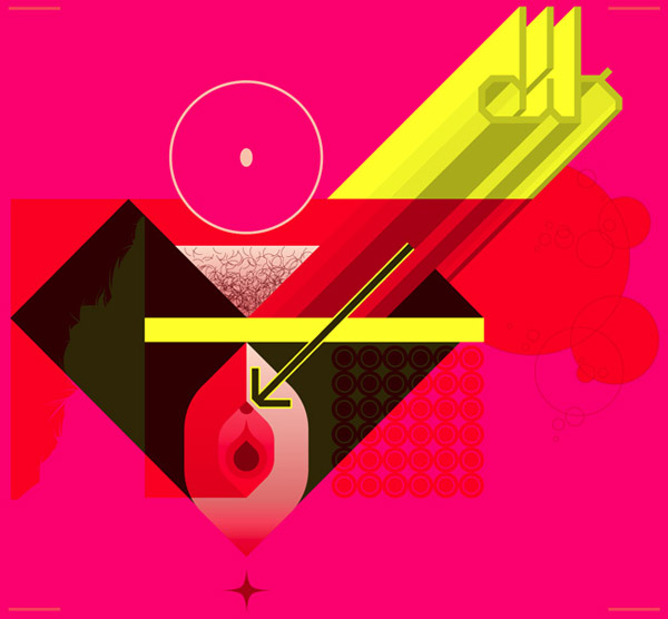 Use a mix of vector shapes, patterns and resources, combining them to produce striking artwork.