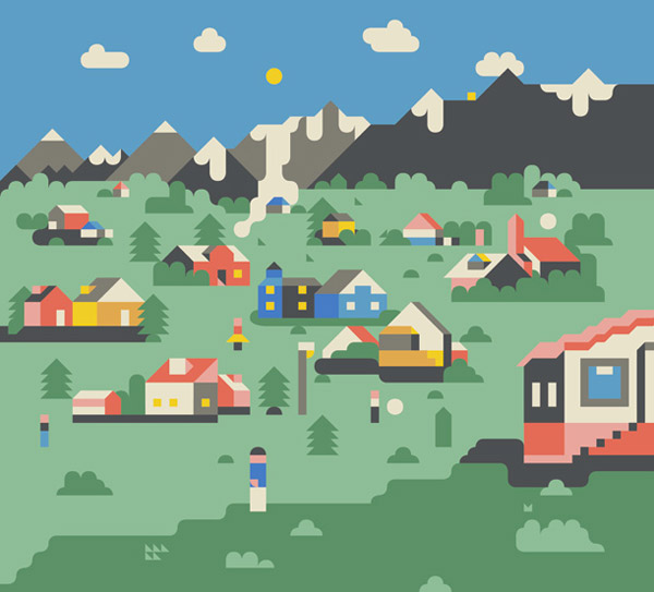 The unique work of Siggi Eggersson takes pixel art to a new level, using the basic shapes and flat color of vector graphics he reflects the style of traditional pixel based graphics of early digital design but with a twist of smooth, rounded edges.