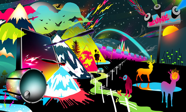 Often referred to as a spectacular Photoshop artist, Chuck Anderson of NOPATTERN also extends his work into vector format. Following from his bright and vivid lighting effects and arrays of color in his trademark work, his vector illustrations take on a very similar approach, using exceptionally vibrant colors and masses of elaborate detail.