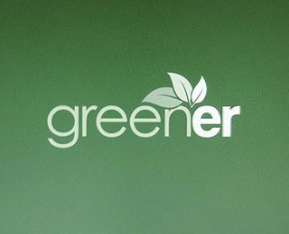 The Greener logo by Tanner Christensen gives a modern impression with varying weights of sans-serif type, but also adds the impression of multiple layers without risking the logo’s ability to be reproduced in a single color (always an essential aspect of good logo design).
