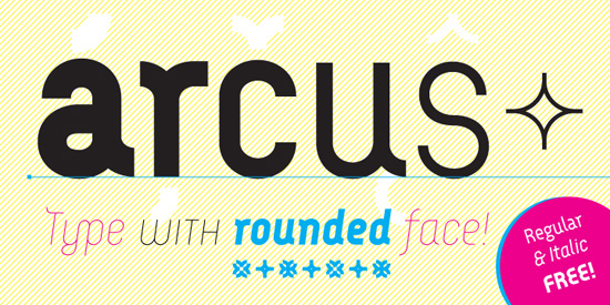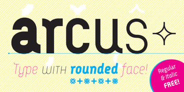 Arcus Regular is part of the Arcus typeface, featuring a whopping 12 fonts. It is a geometrically constructed and very round font. Every font will cost you a small $14.50 each, with the exception of Arcus Regular and Arcus Italic, which are completely free.