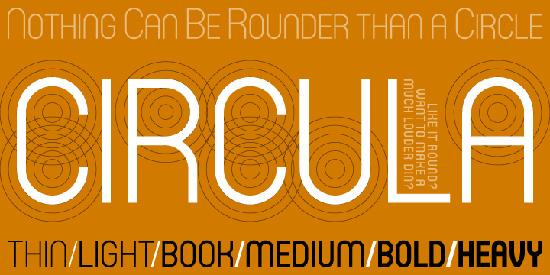Circula Medium is one of six typefaces from the Circula font family. The whole family will set you back $72 USD, but the medium version is completely free. The typeface is a simplified geometric display typeface based on circles, as seen above.