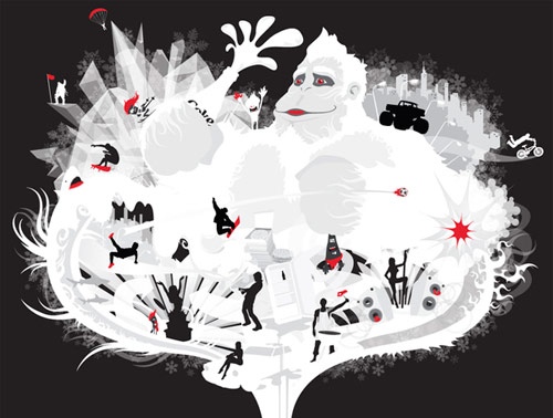 A common feature seen in all the examples is how the use of vector graphics results in a unique crisp and stylized image, ranging from colourful 'cartoon-like' designs to more abstract and geometric illustrative works.