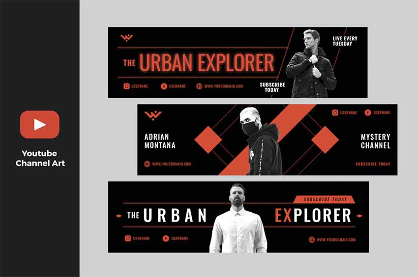 The fact that this channel art can be used for a wide variety of content is impressive. It's perfect for travel videos, architecture content, and even vlogging. Download Modern YouTube Banner Template and begin your journey to becoming a YouTube celebrity.