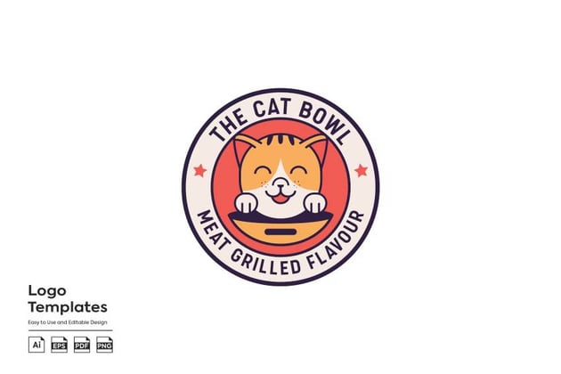 2. Cute Cat Bowl Logo Design (AI, EPS)
