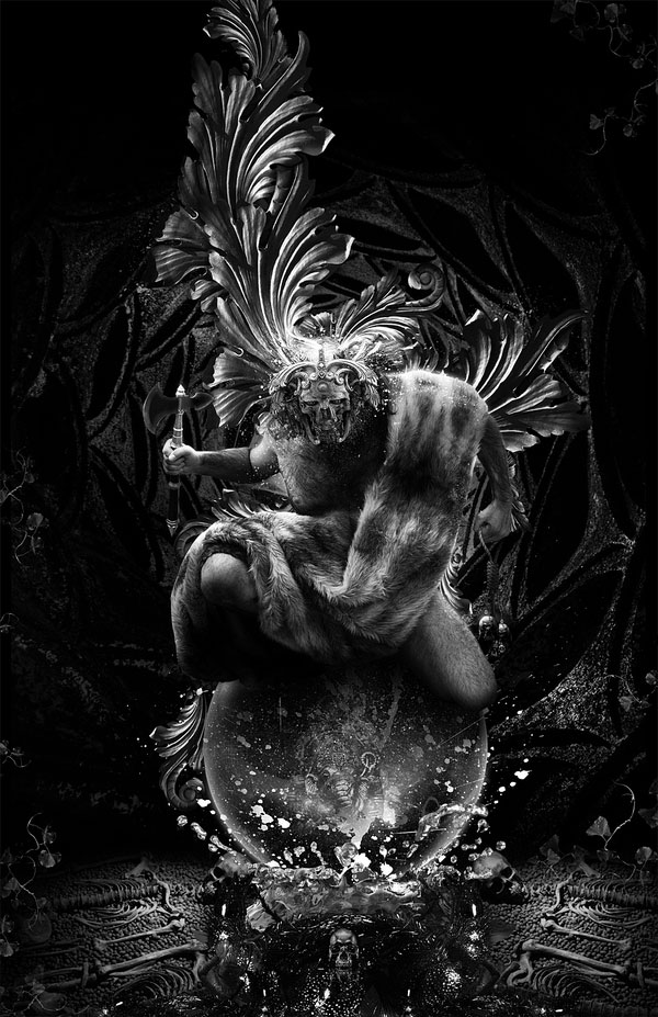 Well Project Zodiac is an on going series initially inspired by depthCORE's NOIR release. I wanted to further elaborate on the monochromatic theme by incorporating subjects from material I have been reading about recently, specifically: consciousness, physics and astronomy. As far as process - with most of my personal art I enjoy the freedom from client demands. I try to let the piece evolve on its own, rather than sketching preliminary comps, roughs or pre-planning a composition. That's one of the luxuries we digital artists have. Thank God for the history hierarchy, layer palette and Cntrl Z!