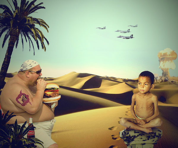Hopefully an artist can achieve both. A powerful statement with bad design is still bad design and won't captivate viewers for long. With Land of the Free I wanted to be as blunt and forward as possible. Nowhere to run, nowhere to hide, just an abrasive vantage point on American society.