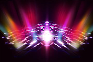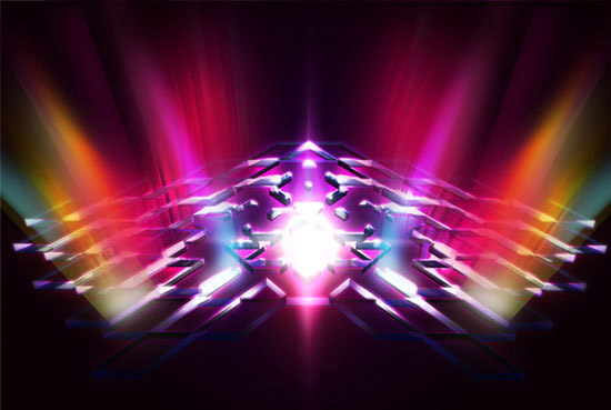 Color Pleasure Machine has a very dramatic feel to it, created by the use of glaring, bright light effects and three-dimensional shapes.