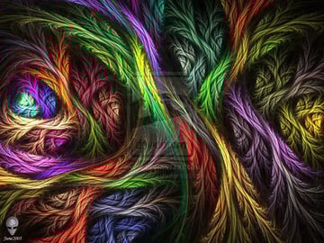 Psychedelic Wool is an amazing and beautiful fractal piece, merging the use of a vivid color palette and superb highlighting and shadowing detail to make it burst with viewing pleasure.