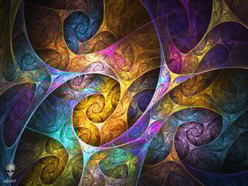 Here we have another fractal piece; Psychedelic Swirls, however, is a much more swirly fractal piece of artwork, using the colors from the traditional style and merging it with an increasingly popular modern day trend.