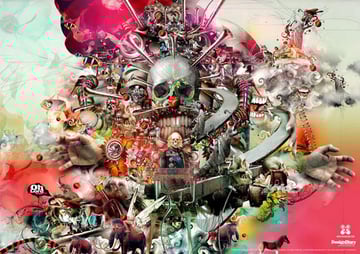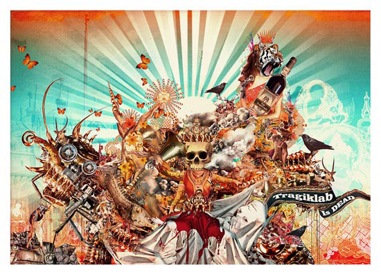 The following five pieces (all of which are by the same artist) are packed full of color and lots of different medias, from photographic elements to sketches and vector shapes to patterns. All five pieces are extremely detailed, interesting and compelling.