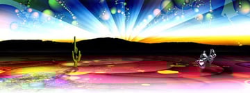 Psychedelic Desert Dreams is an unusual yet interesting digital piece. The desert floor is made up of circles in various colors and the sky using various glows, highlights and shadows among ray patterns to draw the viewers eyes into the centre of the piece.