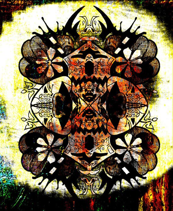 This slightly more grungy and dull approach to psychedelic digital art combines textures and light, fractal-style patterns to produce an interesting and gripping piece.