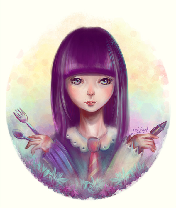 Greetings, everyone, I'm Yulia Sokolova (aka Yuzach). This one is an old morning sketch, hanging next to my working desk at the office. It is called "Eat'n'Draw" and depicts my usual day: I start drawing from the early morning and forget about everything else (particularly, about my dinner) until I leave the office. So I'm always chewing something while drawing, that's the whole process.