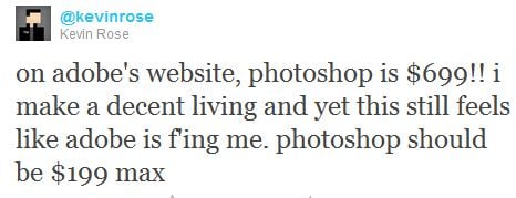 A couple of designers (who shall remain nameless, of course) privately responded to my inquiry on Twitter that as design students or new freelancers, they have had to turn to getting their copy from "non-official" places. Many schools require that their students own their own version of Photoshop. So they need it to pursue their education; and at its current cost, they said, they simply can't afford it.