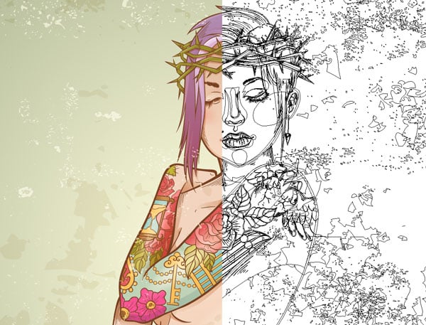 Finally, we're on to the most deceptive style of vector artwork: clipping masks. When you view the artwork in Preview Mode, the lines, background, or frame of such work seem very clean and organized. When viewing in Outline Mode, however, it’s the complete opposite.