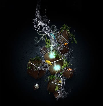 The cubic series first started out of a simple material test in Blender. I used boxes to test a new texture and shade. After a few tweaks I loved the flowing cubes and was thinking about an idea how to connect them, how to bring them to life. I love working with massive static objects and let them flow around. There is no big idea behind these series. I just love the cube as shape and I could bring a dozen others for the series, but I think the people have seen enough cubes hehe. But I got one last piece in the making for this series. Let’s see what I will come up with.