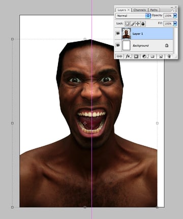 Duplicate the layer and Flip Horizontal. Move the duplicate over the right eye and Transform/Warp to fit – remember facial features are always asymmetrical. When your done Merge Down the upper layer.