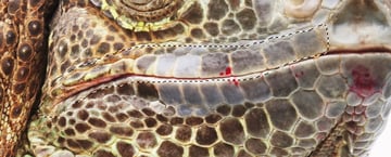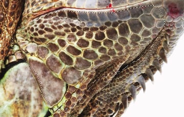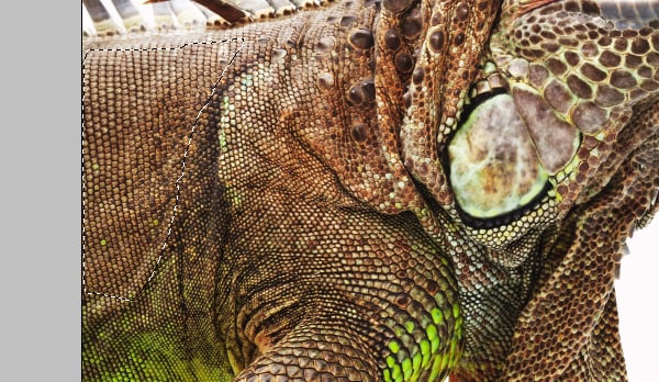 Now we’ll add some reptilian skin. Open the iguana image, roughly select the lower jaw area and Copy.