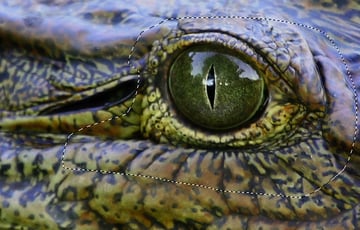 Open the second crocodile image, then make a large, rough selection of skin beneath the eye and Copy.