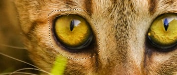 Now let’s give our creature some menacing eyes. Open the cat image, then roughly lasso the left eye and Copy.