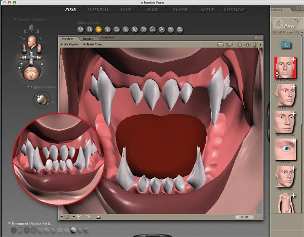 Finding the right image for the teeth proved a bit of an obstacle, so I opted to use Poser. I used the M4 model and Injection Morphs, both available from Daz3D.