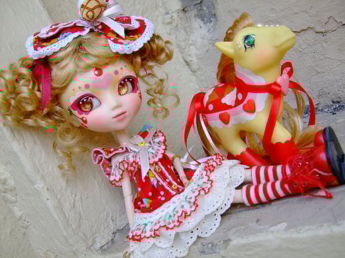 I did a custom Pretty Parlour project out of boredom by turning an old vintage pony house into something totally new again. Lots of planning and hard work went into that, but I'm really happy with the results. Also, I created a new species of Pullip dolls and ponies called "Pollips". (Pullips + Ponies) Customized dolls and ponies paired together as a set. I hope they would someday make it big in the Dolly world.