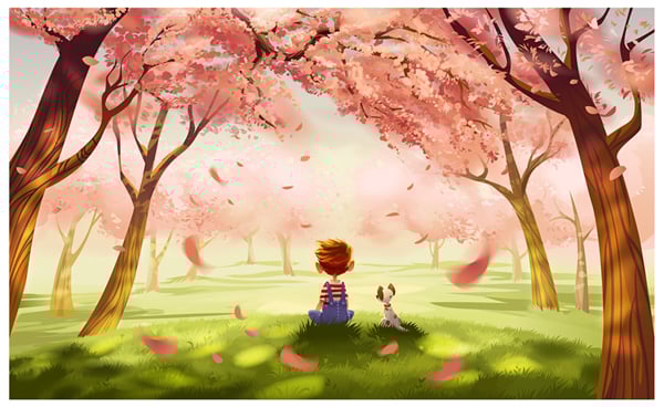 Alas, at this period of my life I have to work overnights. Approximately from 4 to 8 am. Sometimes I can work an hour and a half on my lunch. Right now I'm drawing a few pages of comics in vector, of course! I'm also planning to convert one of my illustrations "Hanami" into a series of artworks to submit for a competition of book illustrations.