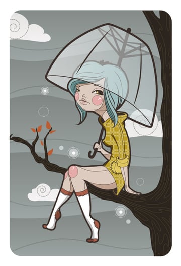 Oh my god 5 words! I have trouble defining my style in a paragraph! Well I would have to say (in no particular order) retro, simplistic, unusual, hip, cute. I find those tend to be the words I use the most when talking about my art.
