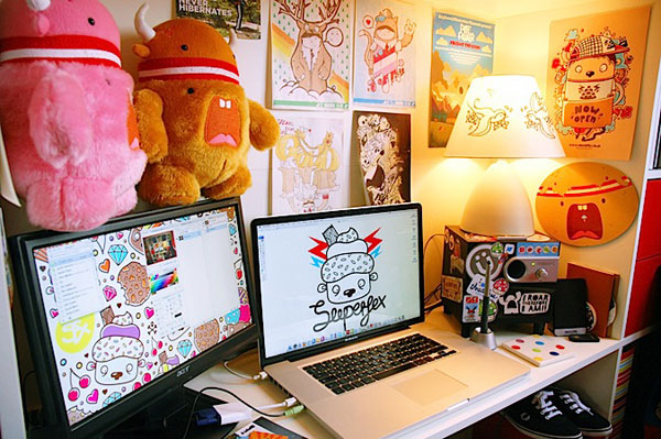 Claire Latchem — aka Superfex — is an Illustrator and designer from South West of England. Claire says, character design, animation, model making, vector and tattoo design influence her work greatly. She also enjoys exploring vivid color palettes and different line weights. Her style of illustration is cute, energetic and playful. Read more about Superfex at the jump.