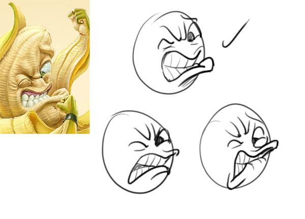 When drawing a complex character, boil the expression down to its simplest form and make quick sketches of the expression that you are trying to create.