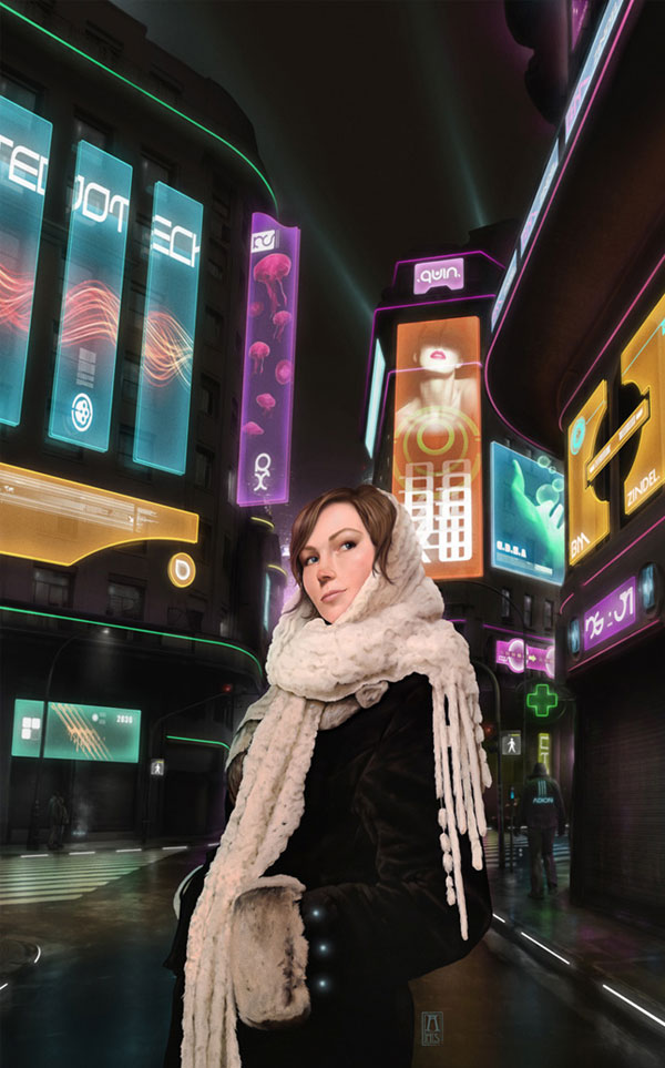 Most of the time I start with a sketch then scan it and begin from there in Photoshop. I always pull some reference photos for lighting, architecture, things like that. I normally have a good view of what I want the piece to turn out like, but as always, things are changed and tweaked along the way. I also have a set of few brushes that I use for most of everything, and a second set for textures.