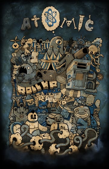 QYour illustration "Atomic Circus" still has the same lively and merry attitude, as the rest of your work except this one is a bit more detailed than the rest. Please talk about the process of creating this piece.
