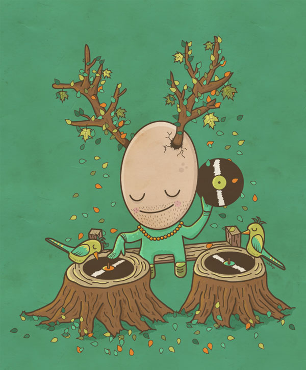 That’s really hard! I don’t really have any consistent characters that are identifiable as mine but I do like drawing people in animal suits. If I had to pick one it’d probably be Wood Good School Bad. I was on the train going to Birmingham with my wife to buy some vinyl toys at a place called The Custard Factory. Anyway they have this sculpture there called Green Man, which I’ve always wanted to see, and this is my version of it. It was doodled on the train in my mini sketchpad and finished in Illustrator when I got home. If anyone wants to see the original sculpture just Google “Green Man Custard Factory”.