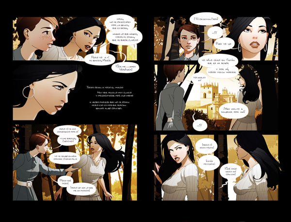 As I said, my personal project is Verónica. It has been stopped for a few months but I would like to carry it out soon. The problem is that I don't have so much spare time and, also, I don't want to stay 14 hours a day in front of the computer. However, I really would like to work drawing comics. If I find a publisher who pays me enough money and does not put so much pressure on the deadlines, I would be delighted to make business with them (smiles).