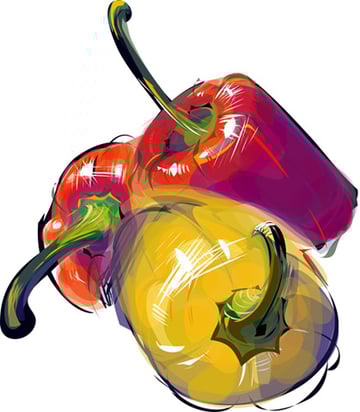 I still remember my first piece very well. I drew fruit and vegetables (peperoncini, peppers, bananas and so on - see images below). I guess that was already quite OK; at least I was paid many compliments. Since then I have of course developed significantly. If one drew a parallel to math as a school subject, one could say that I started with my knowledge being at primary level and I have possibly reached university now.