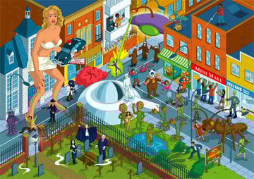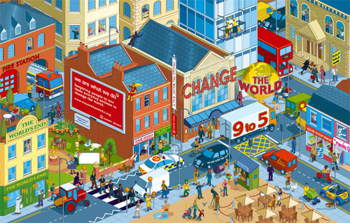 We are pleased to bring you an interview with Rod Hunt, who is a London based illustrator. This talented artist has an extensive portfolio and has successfully represented clients like BBC, British Airways, Maxim, IKEA, Vodafone, and more. He's designed the cover art for the widespread publication "Change the World 9 to 5′ "His illustrations have a colorful retro-isometric style with detailed character filled landscapes. So without further ado, let's have a chat with him!