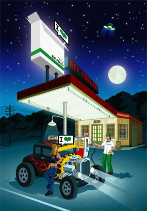 Things that inspire me, in no particular order: Edward Hopper, comics, 2000AD/Judge Dredd, pulp fiction covers, sci-fi, Terry Gilliam, Tim Burton, robot toys, retro 50's/60's/70's advertising and graphics, architecture, animation, film, Mad magazine...