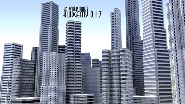 Kludge city is a procedural building and skyscraper generator being developed by Visual Effects Artist, Ed Whetstone, as part of his short film project, "The Deliverator". It is open-source, and freely available for anyone to use or edit, so head on over to www.whetstonevfx.com and download it now!