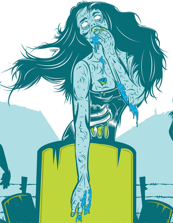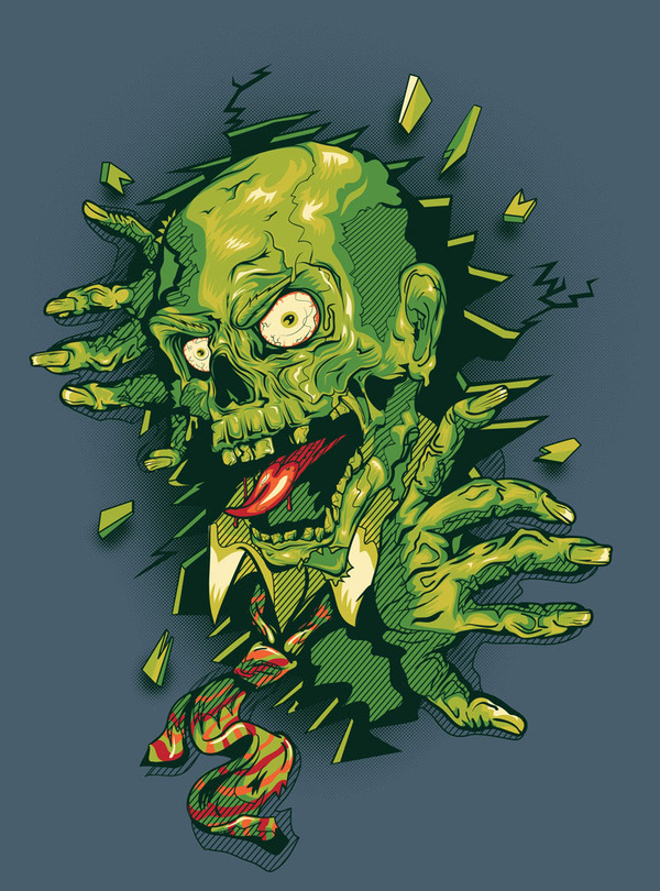 Everyone loves a good zombie movie, book or image and illustrators are no exception. This set of inspirational zombie pictures is mostly vector with some raster images thrown into the mix. This set is also broken into two distinct categories, comical and gruesome. So, no matter what style you're into there's sure to be a zombie for you!