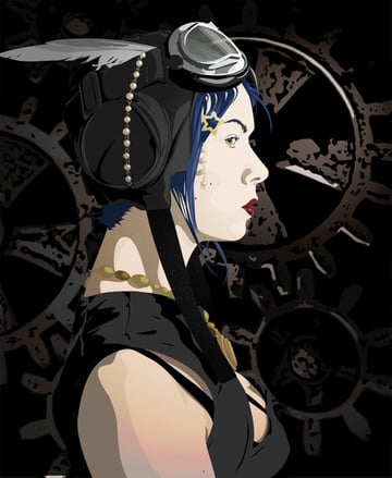 Vexel is a form of pixel-based raster art that imitates the appearance of what we know as vector graphics; smooth, sharp-edged illustrations that can be scaled up and down. Vexel art, however, is created using pixel-based shapes that are layered upon each other to create stepped but gradual color transitions. Gradients are sometimes used to give the artwork a more detailed and smooth look, but at the end of the day, no matter what technique has been used, the final outcome is a rasterized image that can't be scaled. This technique is typically used by those who are more comfortable with programs like Photoshop, rather than alternative vector-based apps.