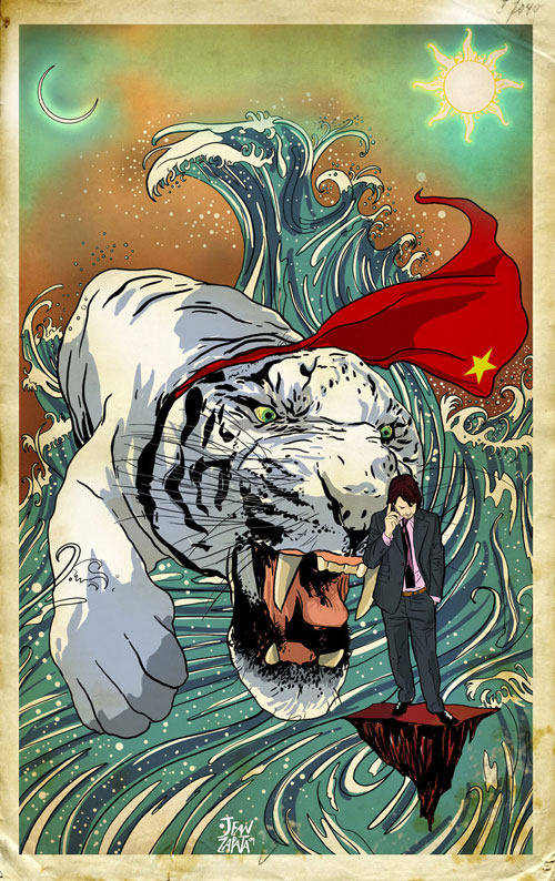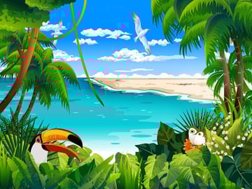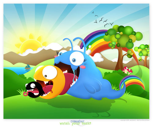 A great vector-style illustration that demonstrates that no matter how colorful and happy the world is, there will always be someone bigger than you willing to eat you up!