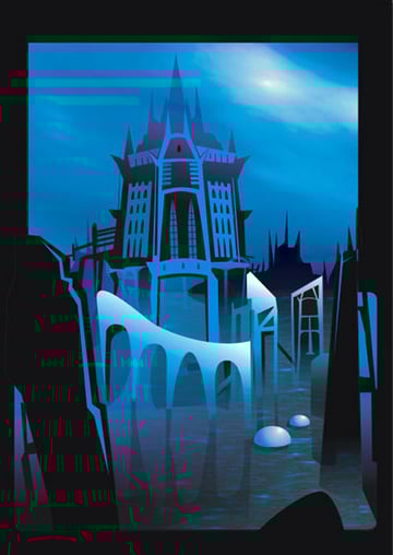 This vexel piece makes use of a monochromatic color palette to create a real gloomy and scary mood. The detail of the sky/water and the simplicity of the building creates an interesting combination and is pulled off very well.