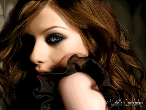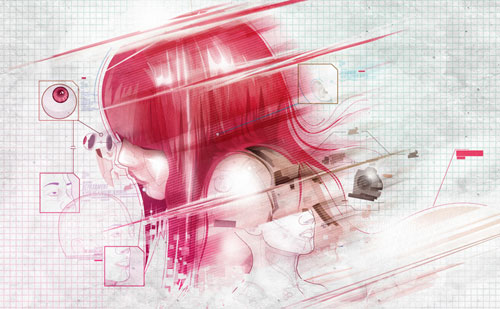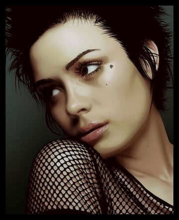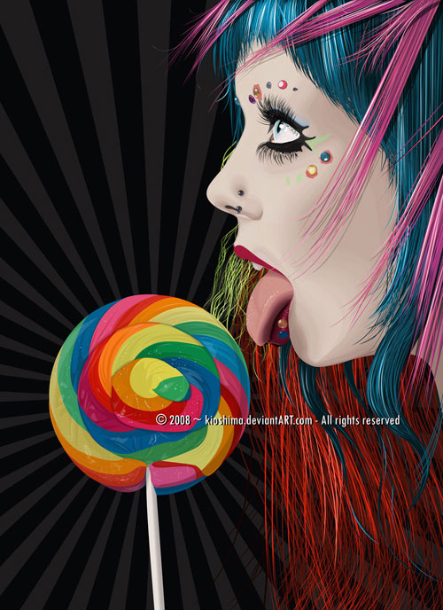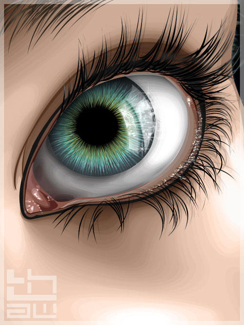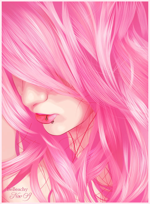 This experimental and very colorful piece is one of the most detailed pieces in this showcase. When viewed at full size (over 1600 pixels wide) you'll really appreciate the detail, especially the eyes and eyelashes.