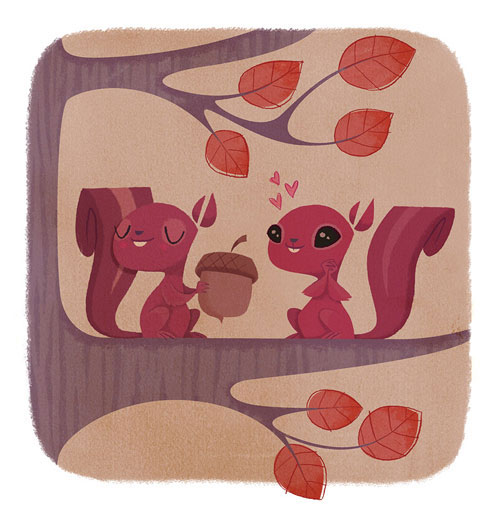 An incredibly cute vexel print piece of two squirrels in love. The main shapes of the design were produced in illustrator, and once rasterized were colored in Photoshop, making it fit into the vexel category.