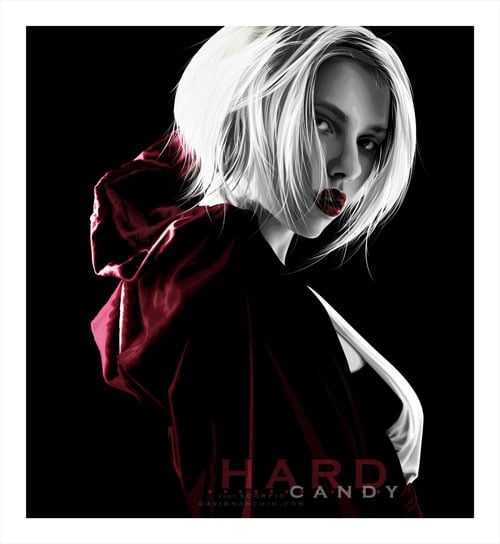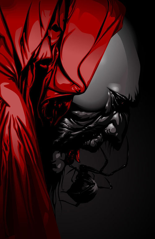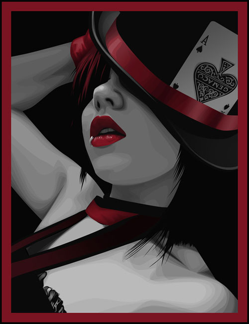 Yet another beautiful vexel portrait piece, proving that the color combination of greyscale/b&w and red go tremendously well together.
