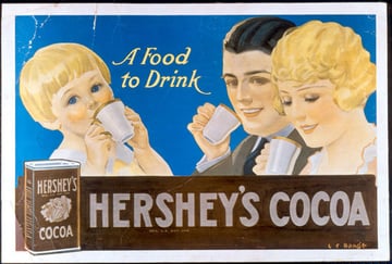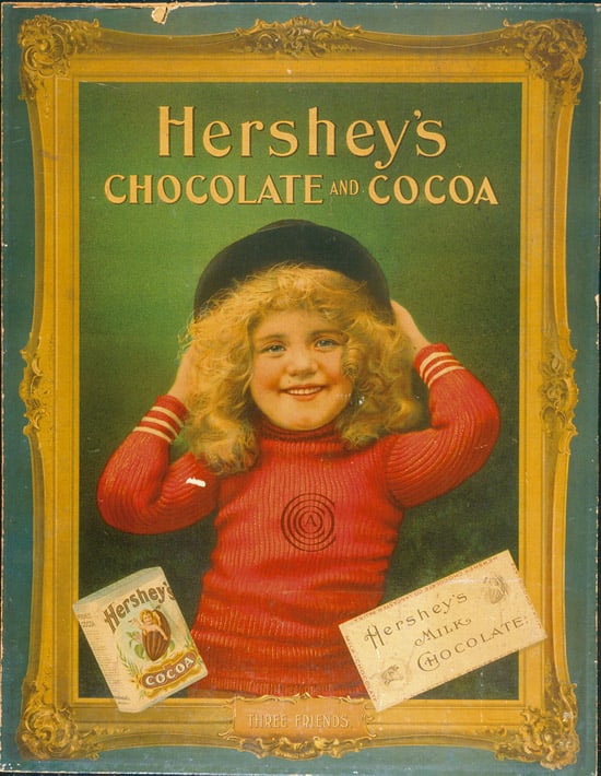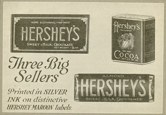 Hershey's advertisements for their chocolate products (in my personal opinion) are some of the best here. I'd be surprised if you hadn't noticed the increase of retro and vintage design trends being digitally produced in the recent months and possibly years; if you look closely at the following Hershey's posters you'll notice that a lot of trends used in modern day graphic design were often used "back in the day".