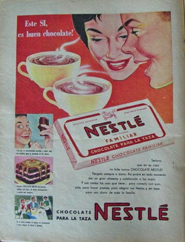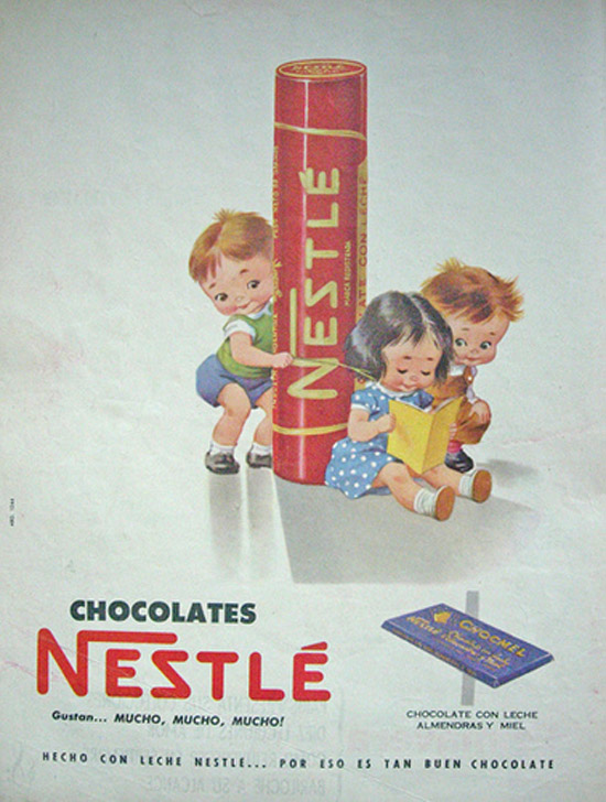 The majority of these Nestle chocolate ads and very minimalistic, mostly consisting of a white background, the products name, a picture of the product and another picture. It was like this for all of Nestle's products other than their drinking chocolate, which can be seen below the other Nestle ads.
