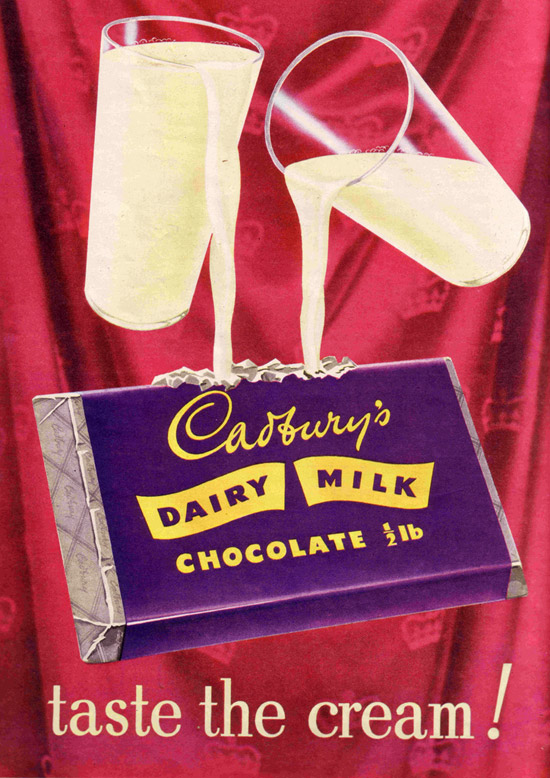 Their posters however, even those that date back to the 1950's, are just as impressive! Their modern advertisements still use the exact same logo, both the minimal "Cadbury's" type-based logo, and their alternative logo with the two glasses of milk/cream - this suggests their advertisements have always worked wonders and therefore have never had to rebrand the company.