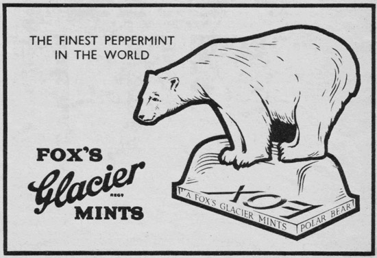 The Fox's Glacier Mints advertisement posters are very similar and both extremely minimal, yet were both successful advertisement campaigns only six years apart from each other. The minimalism in these posters works very well considering the product it is advertising; a clear mint. The lack of color works very well purely because the product itself is also color-less.